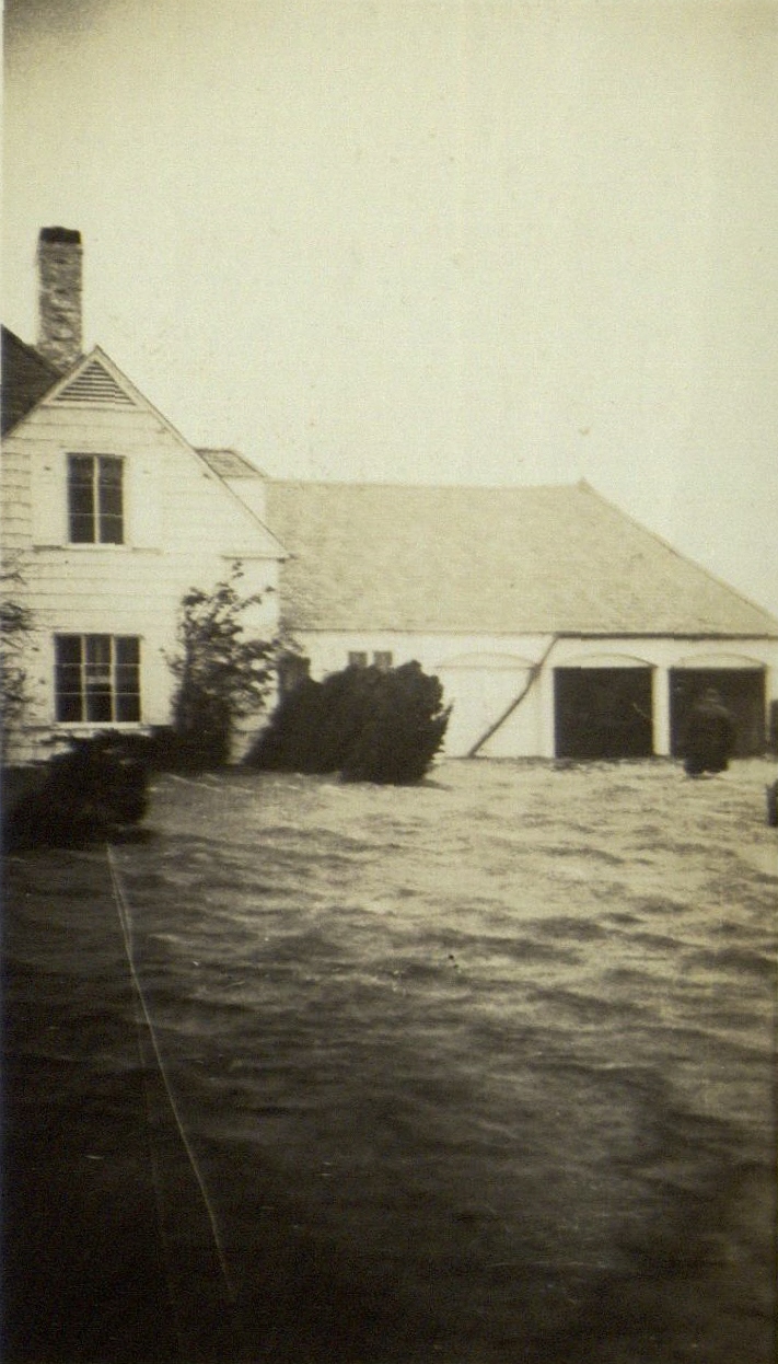 View of flooded property, after the hurricane of 1938.