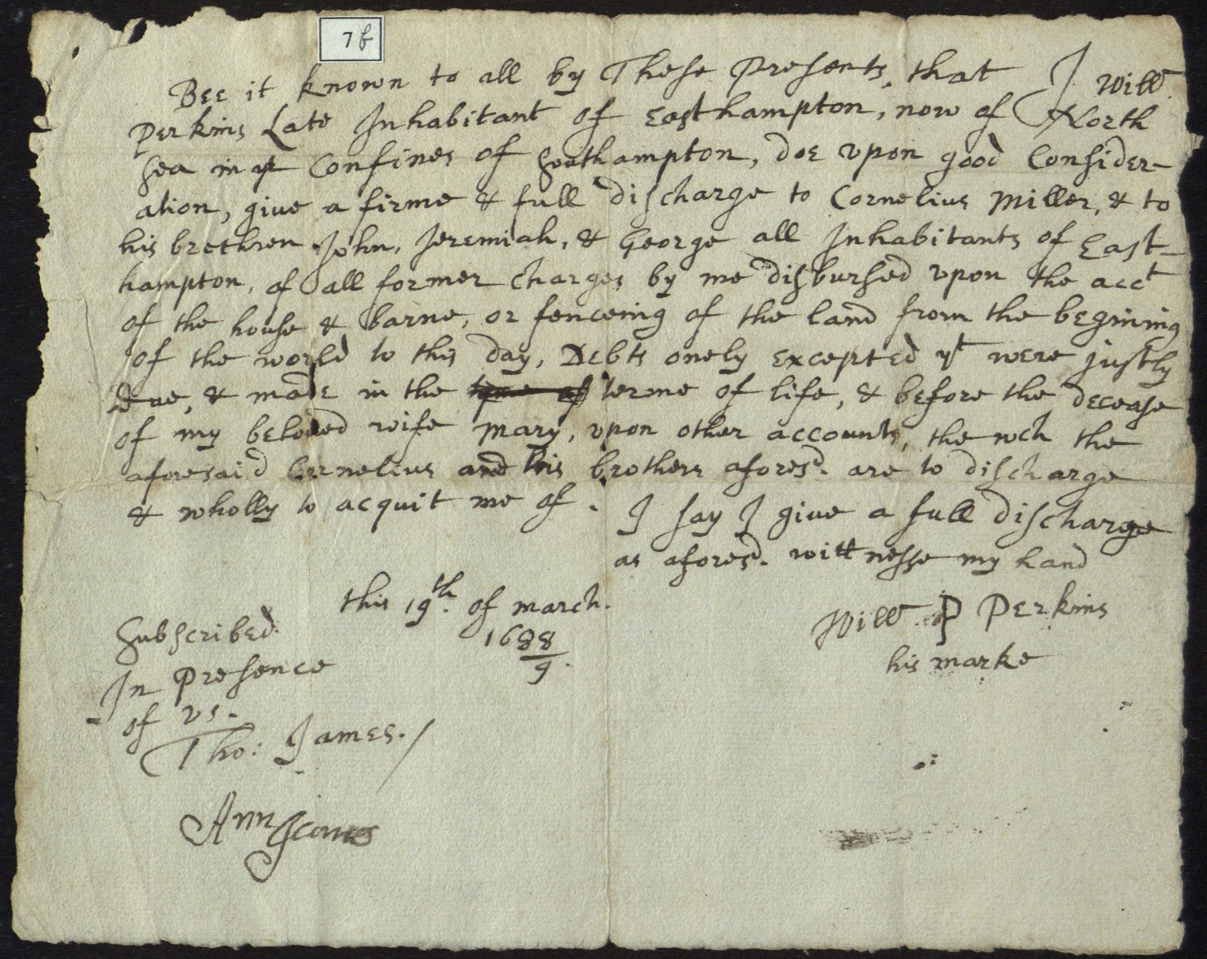 Description of the boundary of the town of Brookhaven, N.Y. in 1686, recopied in 1806, Brookhaven, N.Y., December 20, 1806. True copy of original 1686 "return of the surveyor" of boundaries of the Town of Brookhaven; only provides descriptions of calls for north-south (along Smithtown Patent, before Town of Islip was created south of Smithtown Township) and west-east bounds along Long Island Sound to Wading River/Red Creek (doesn't describe eastern bounds with Town of Southampton). Holograph.