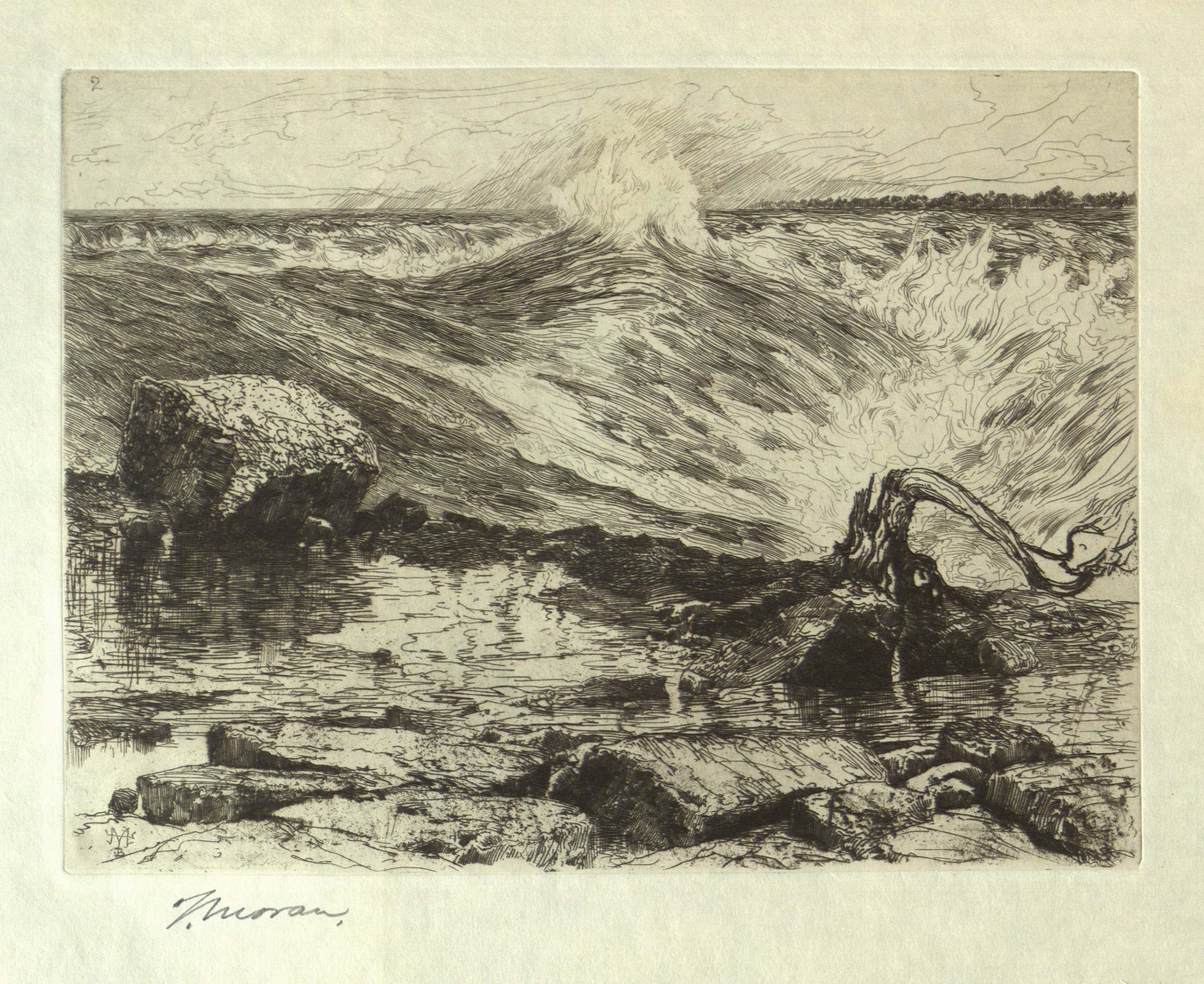 Original signed etching, of the rapids of Niagara, by Thomas Moran.