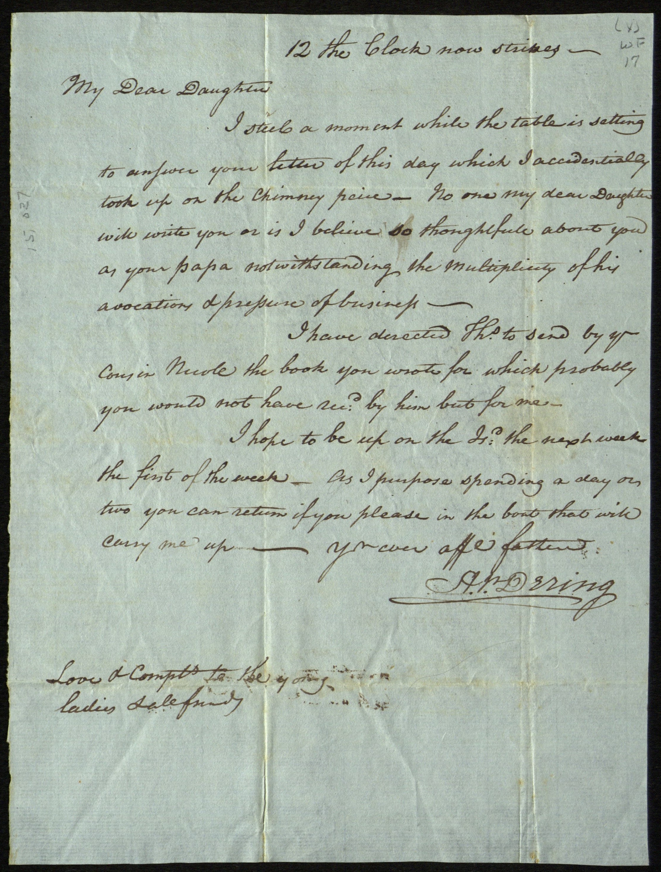 One of (51) Letters written to his daughter Frances Mary, 1811-1817 / from H.P. . Written while she was attending school in N.Y., visiting relatives in Conn., etc.