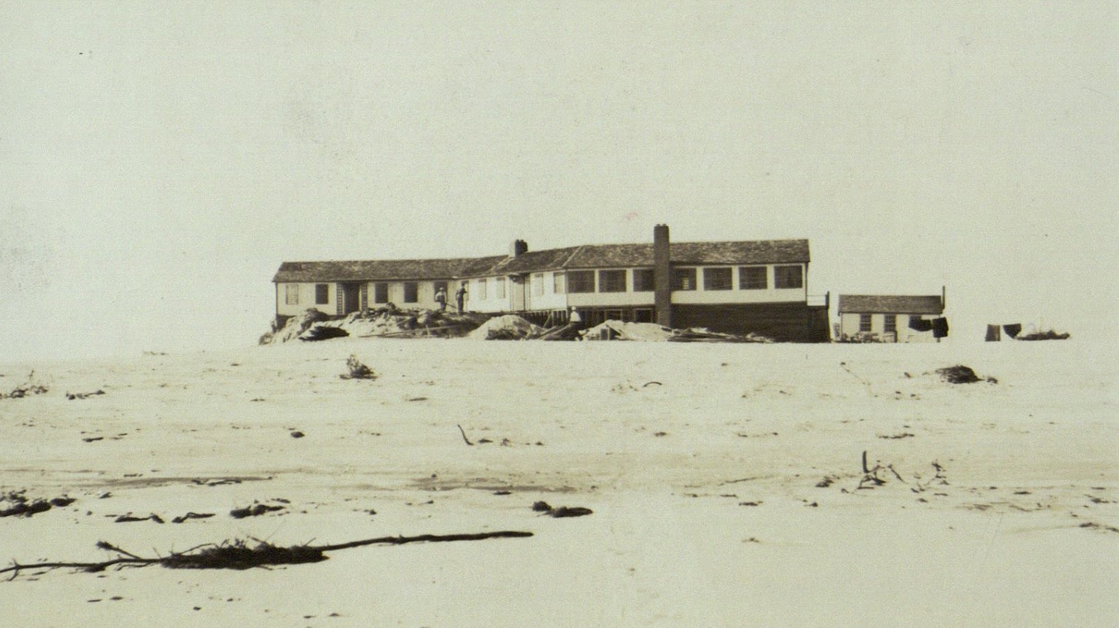 View of a house on the beach, after the hurricane of 1938.