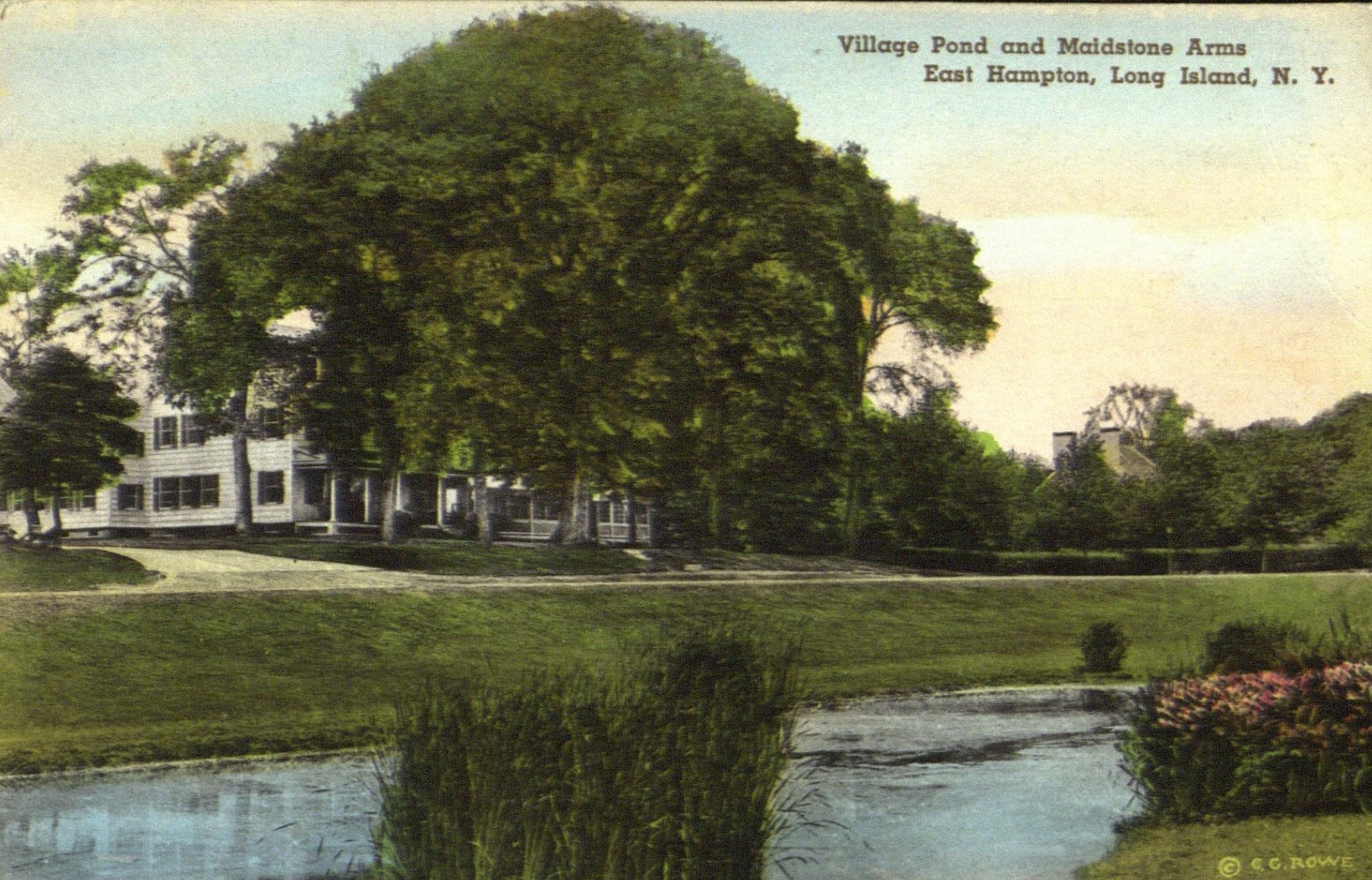 Postcard image of the Village Pond and Maidstone Arms, in East Hampton, L.I.