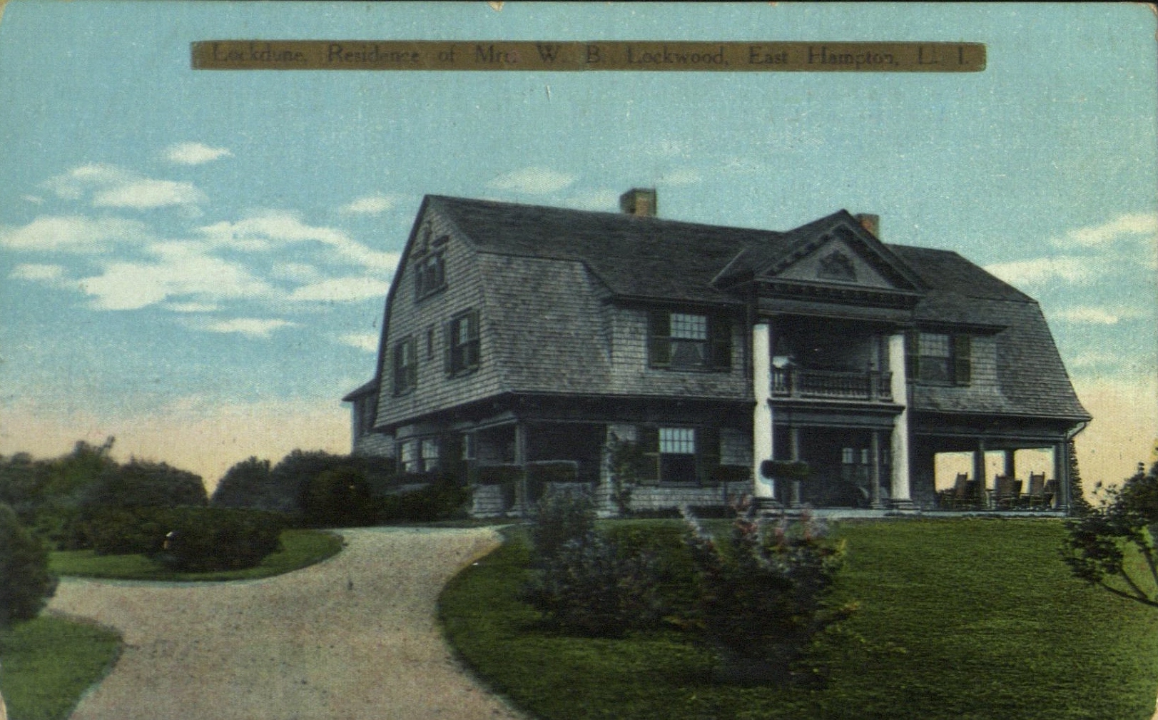 Postcard image of "Lockdune," Mrs. W. B. Lockwood's residence, in East Hampton, L.I.
