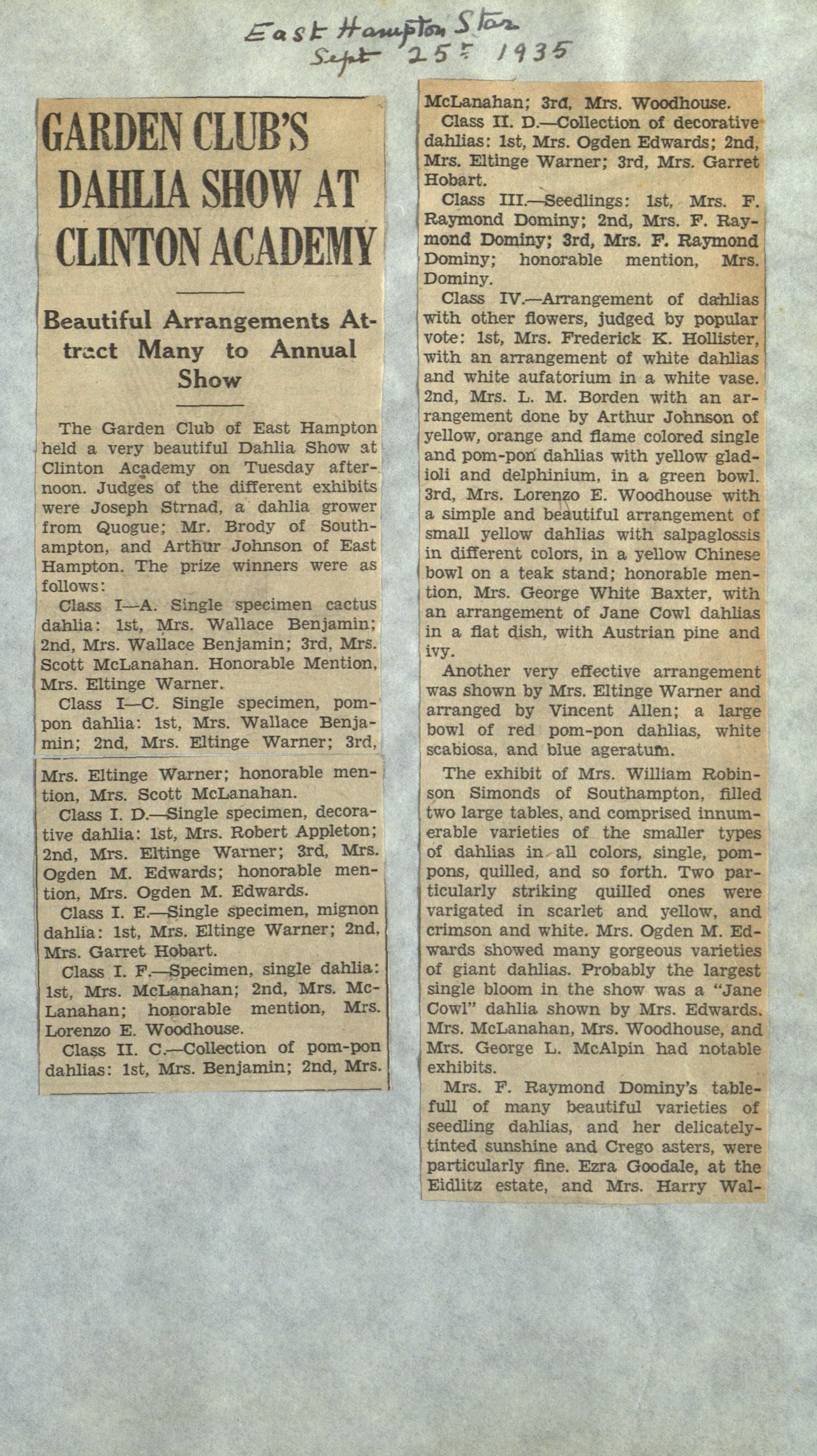 Garden Club's Dahlia Show, E.H. Star, 09-25-35