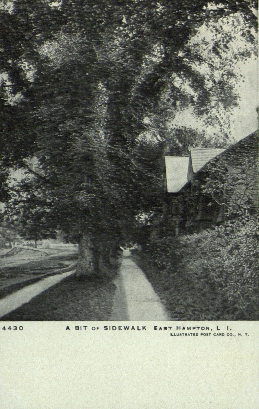 Postcard image of a bit of sidewalk on Main Street, in East Hampton, L.I.