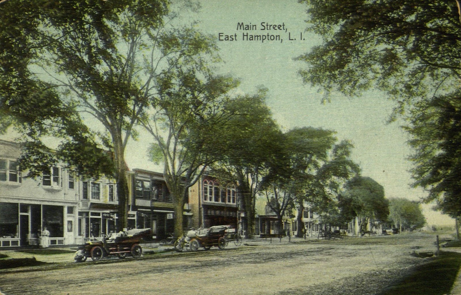 Postcard image of the business section on Main Street, in East Hampton, L.I.