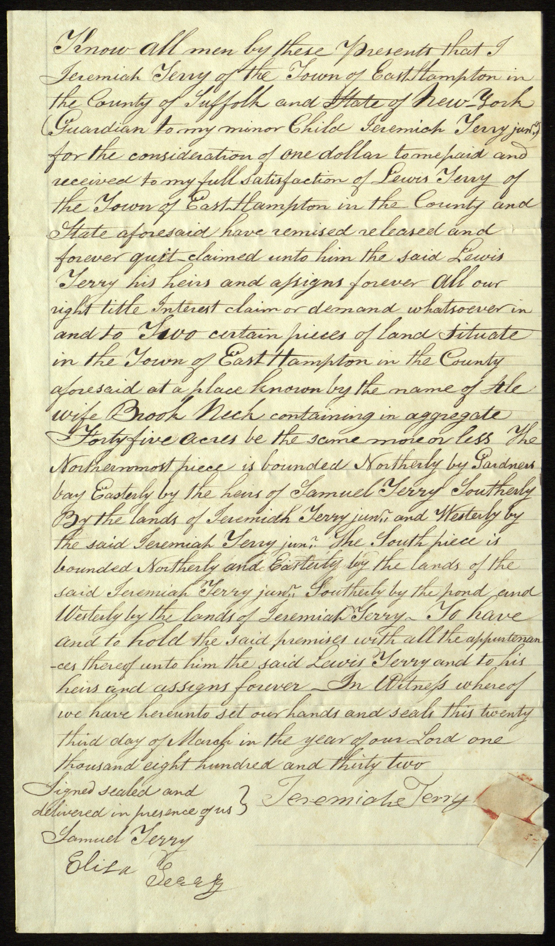 Deed to Lewis Terry for Alewife Brook, March 23, 1832.