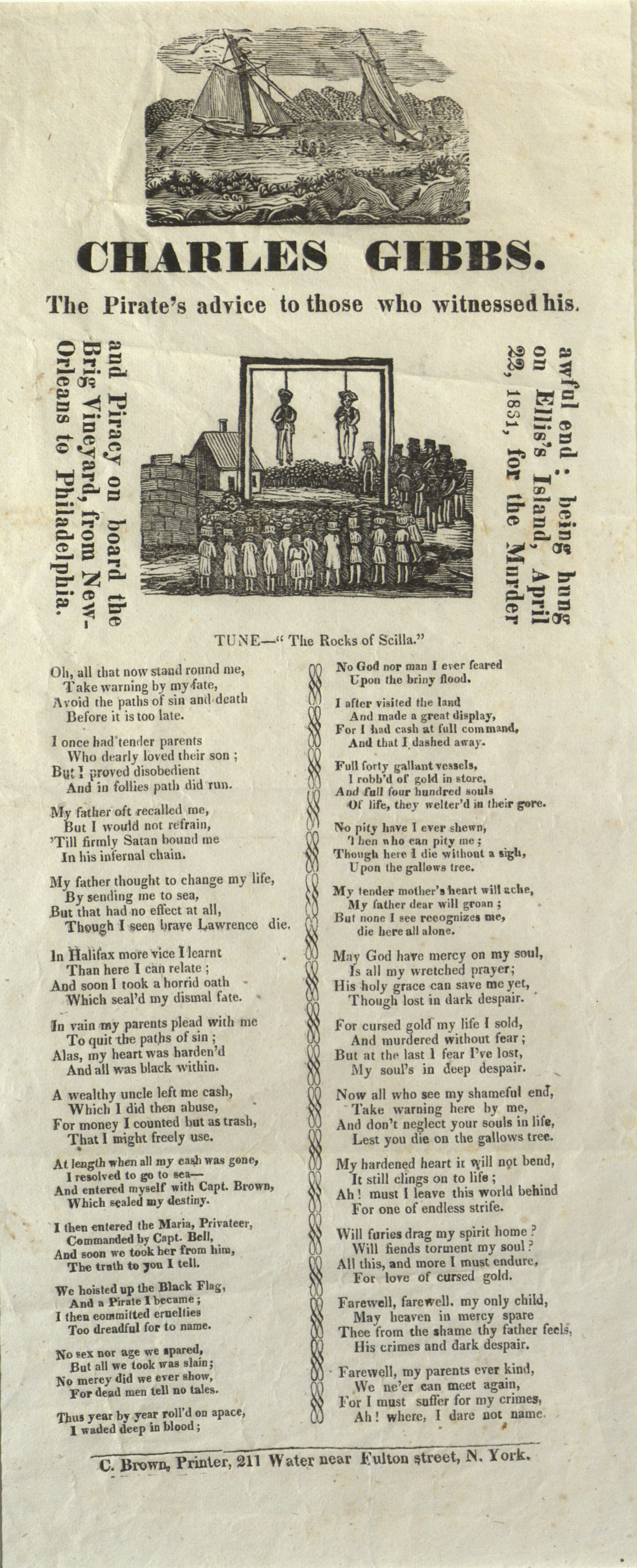 The pirate's advice to those who witnessed his awful end: being hung on Ellis's Island, April 22, 1831 for the murder and piracy on board the Brig Vineyard