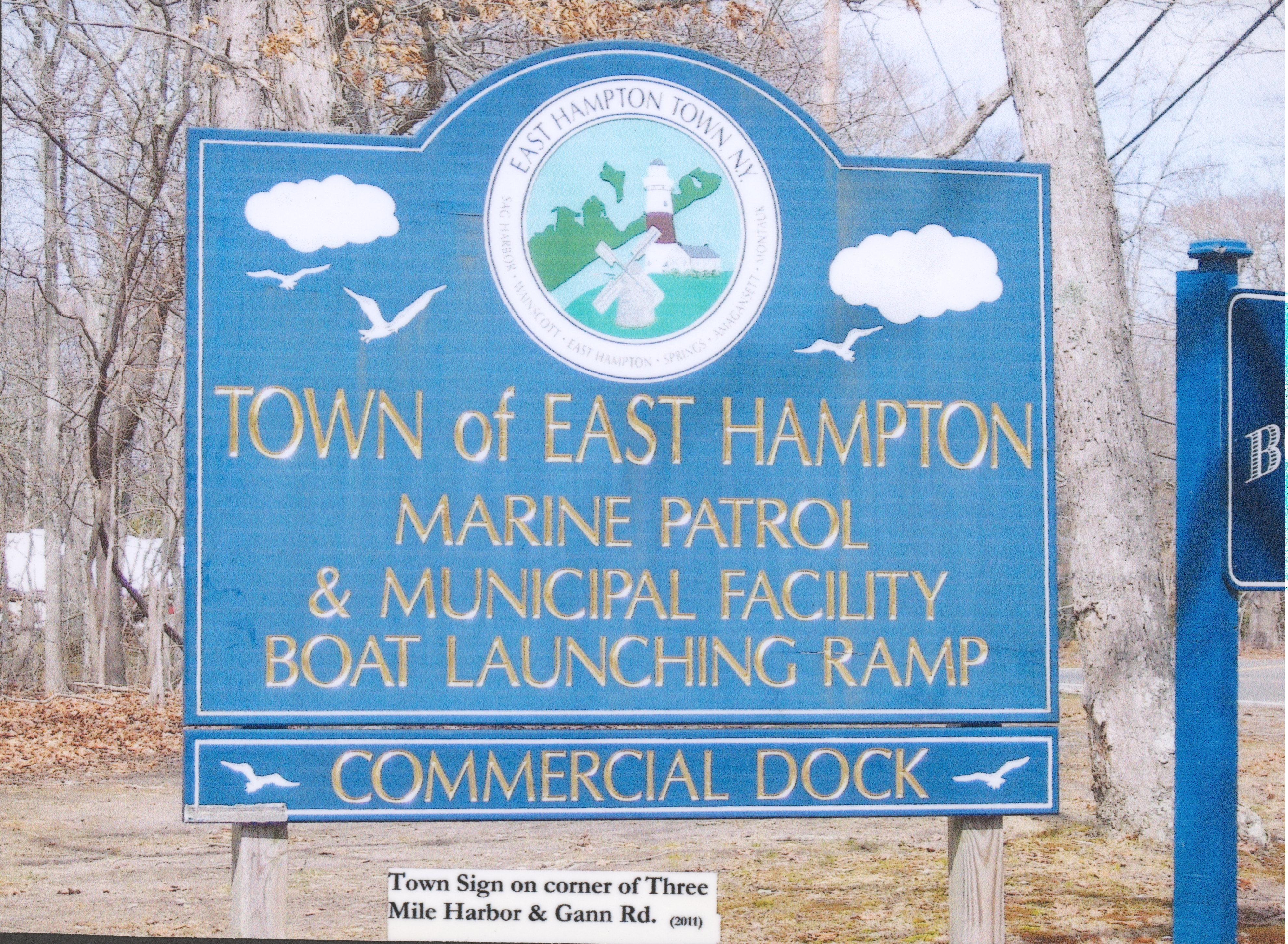 Photo, Town Sign on Three Mile Harbor & Gann, 2011