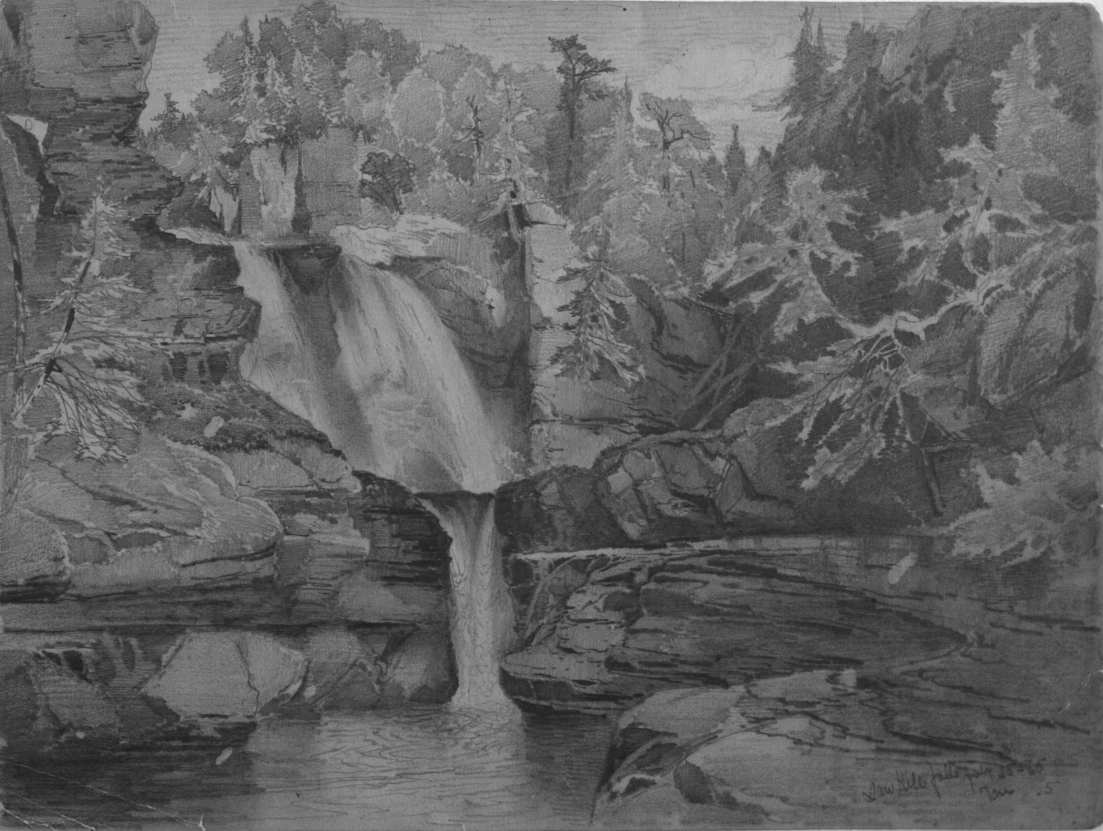 Original signed sketch of Saw Kill Falls, N.Y., by Thomas Moran.