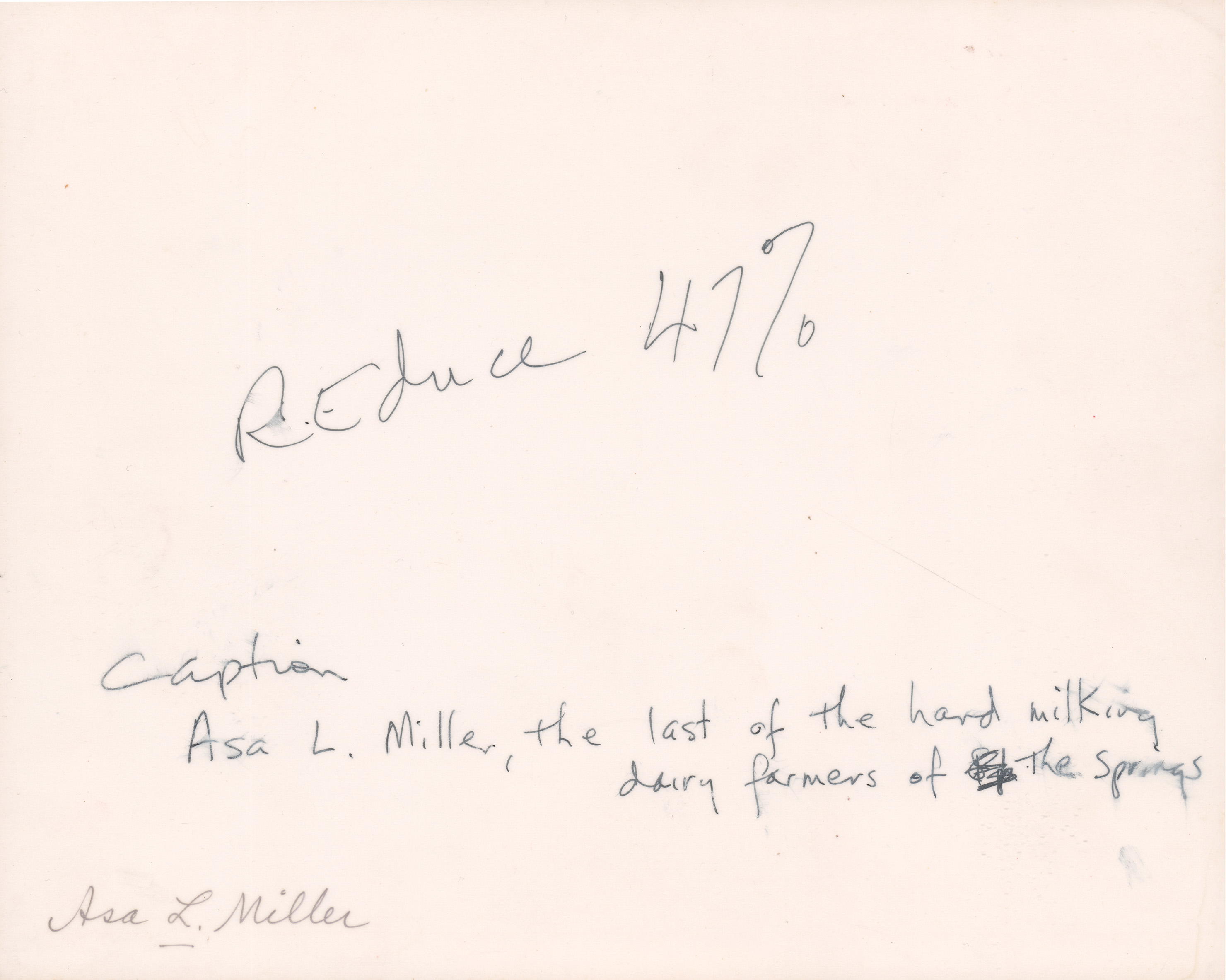 Photo, Asa L Miller, Last Springs Dairy Farmer reverse