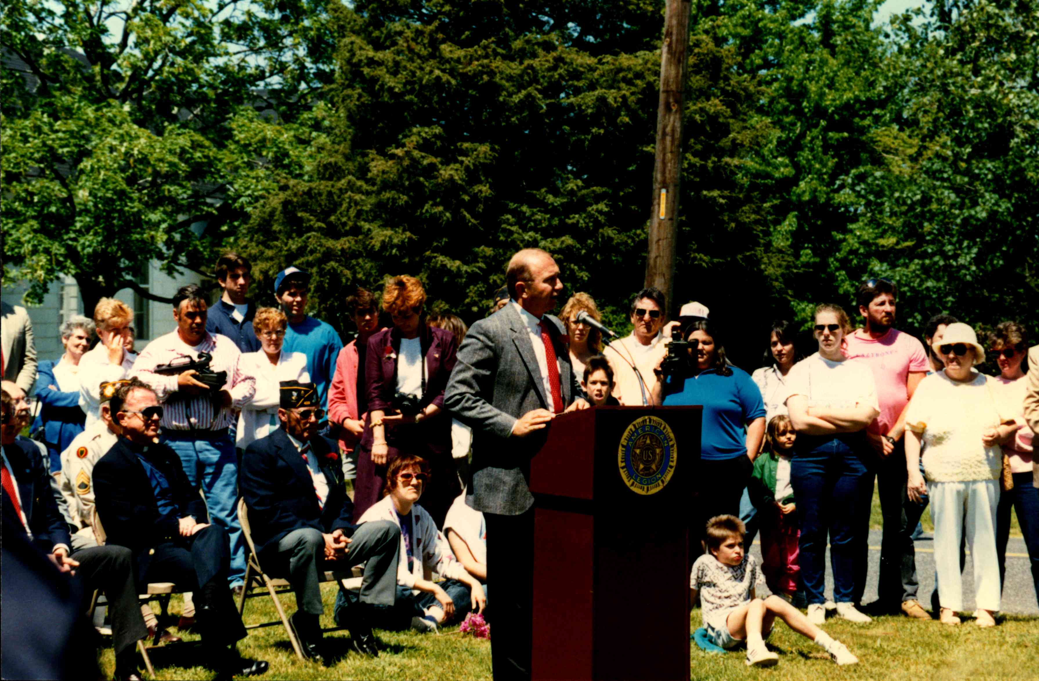 Press behind podium as speech is given during Springs Monument Ceremony