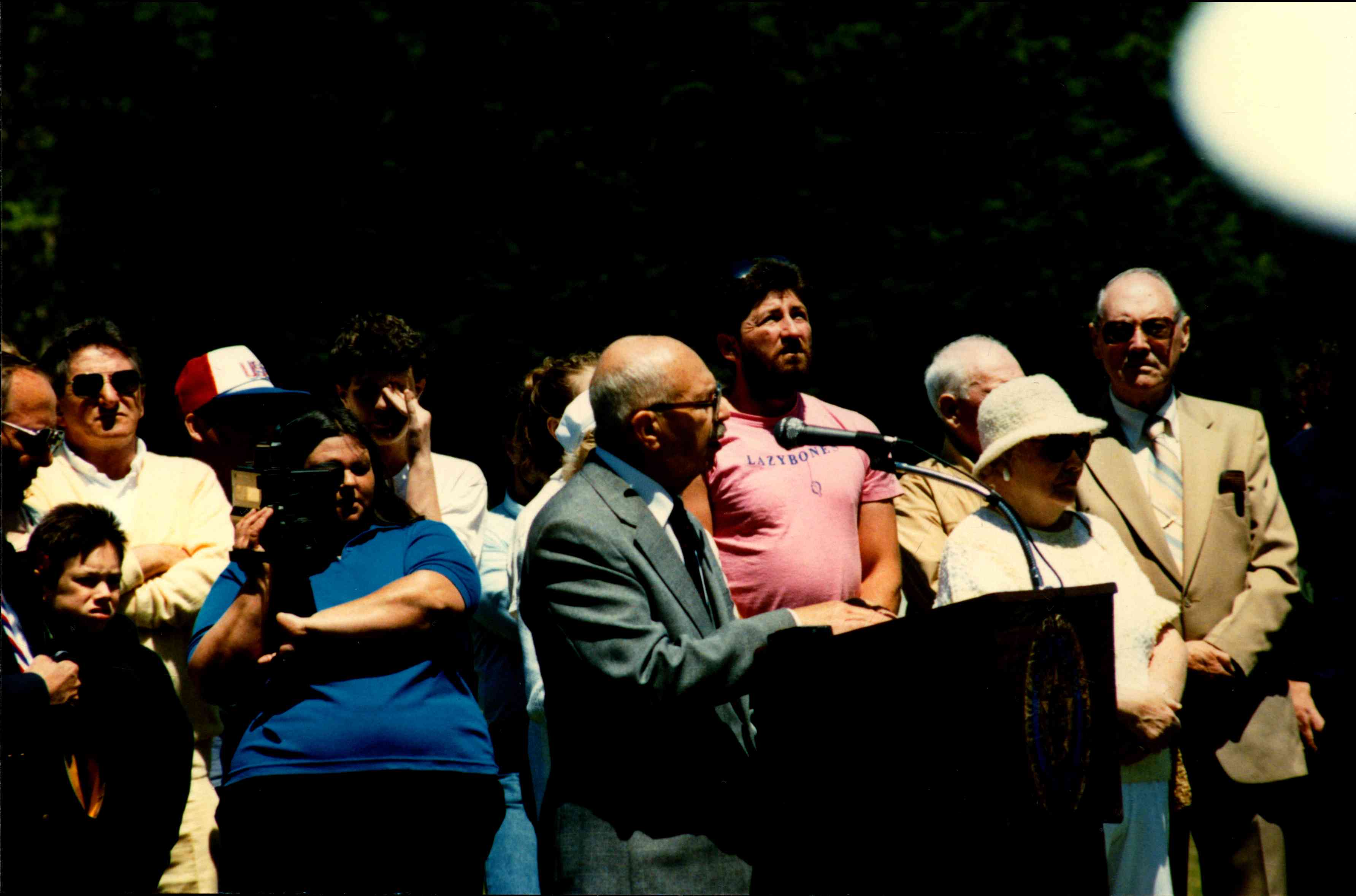 Unidentified man giving speech at Springs Monument Ceremony