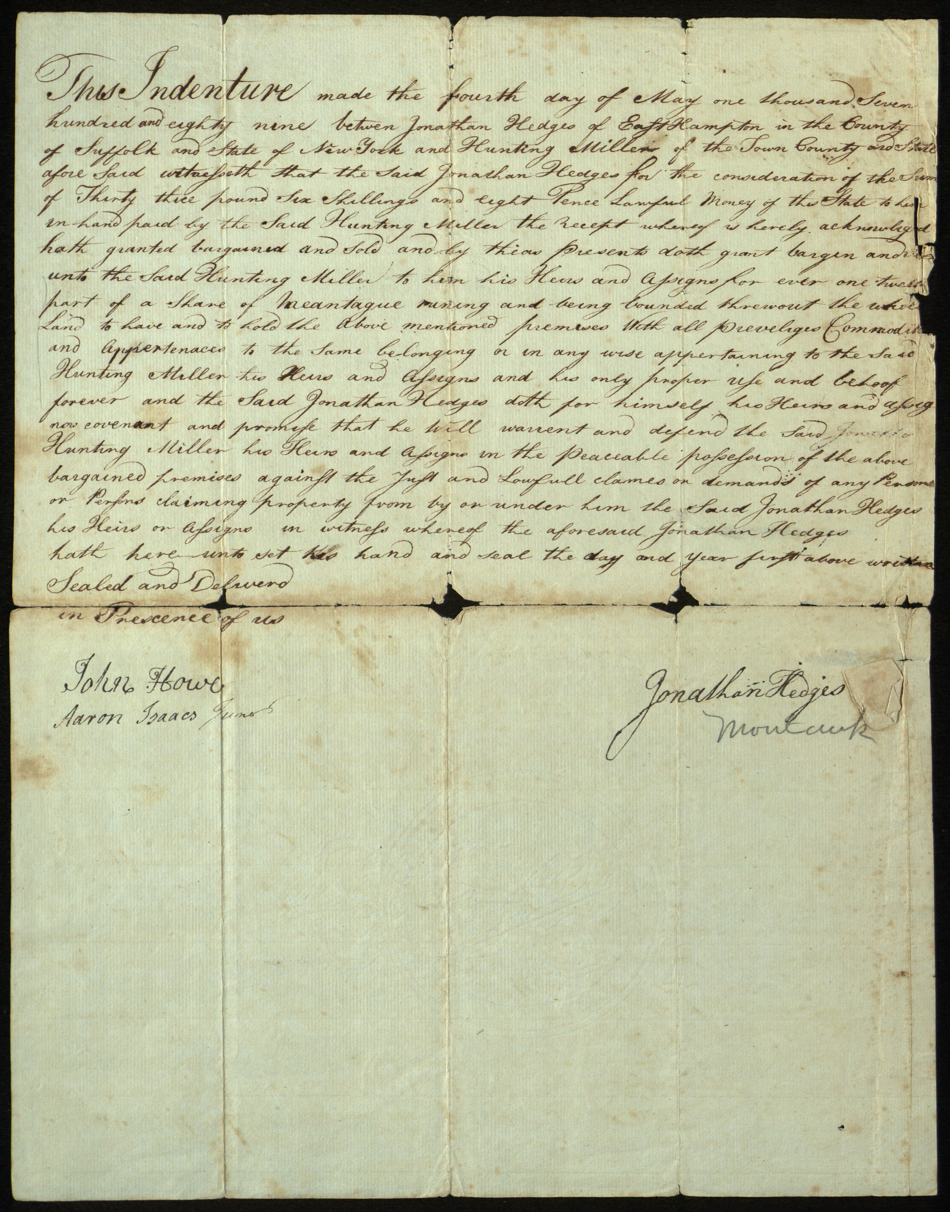 Deed for land located in Montauk, N.Y., May 4, 1789.