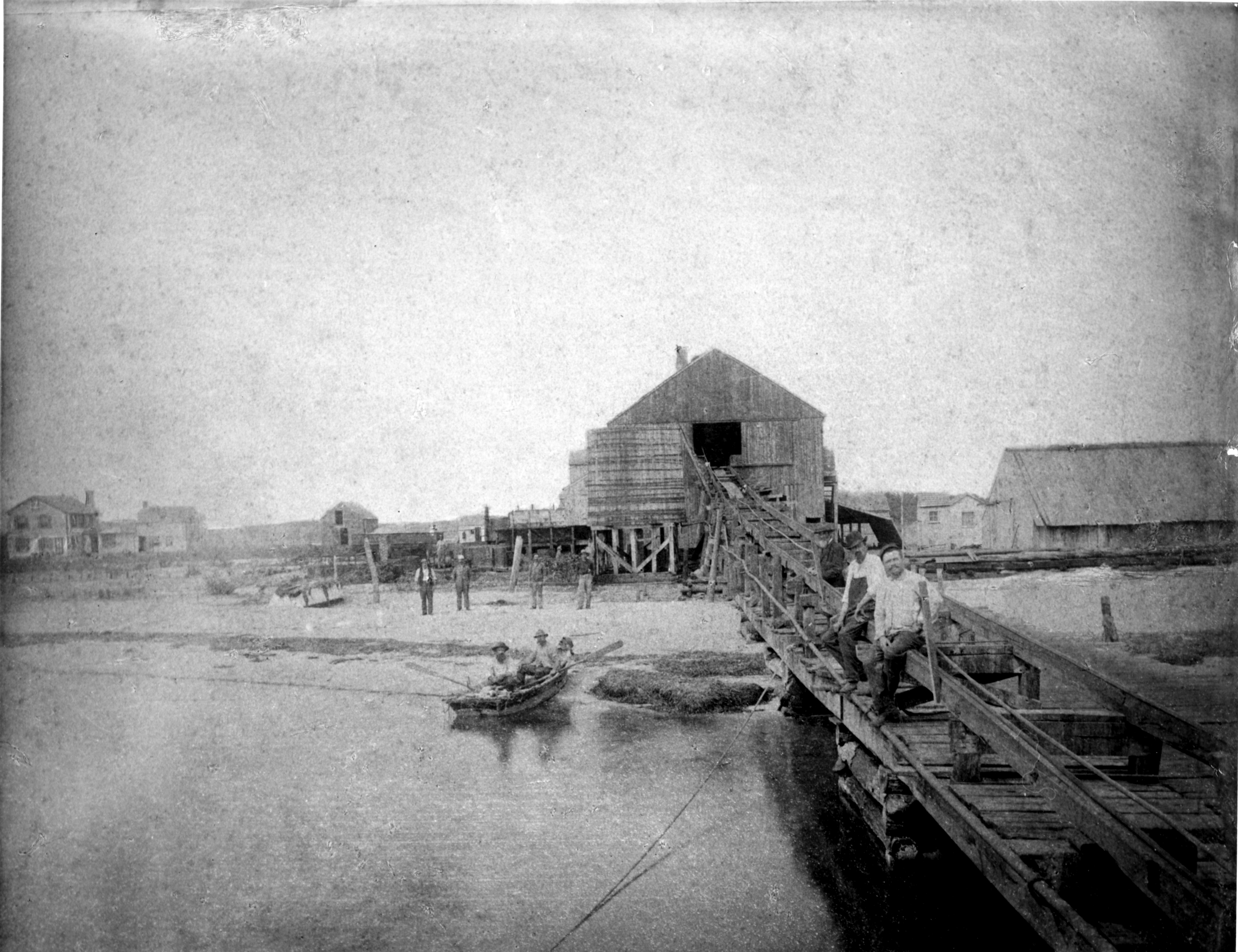 This photograph shows men working at fish factory at Deep Hole in Springs during the 1880s.