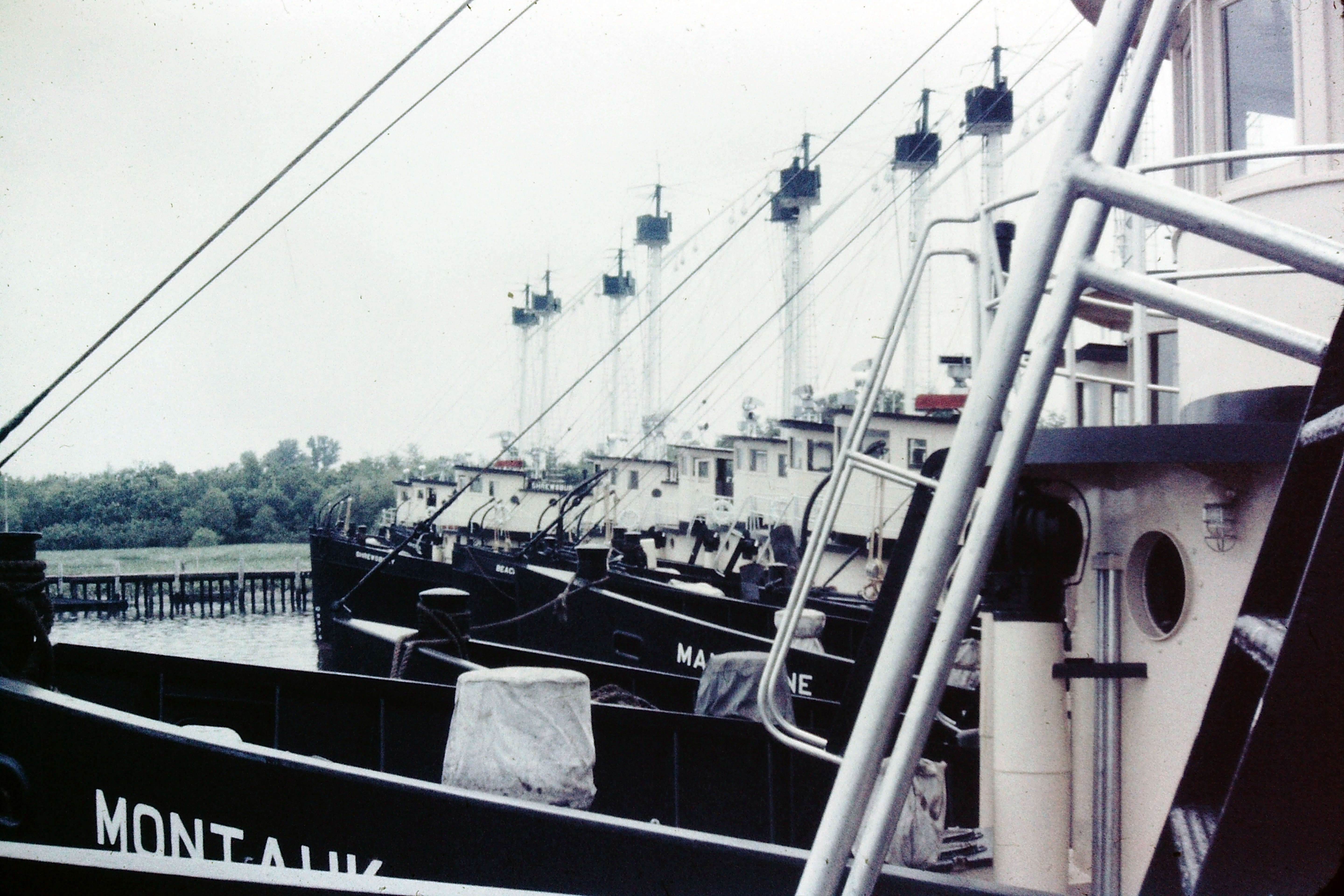 In his History Project, Inc. oral history, Bruce Collins told interviewer Tony Prohaska that he piloted the steamer Shinnecock out of Amagansett for Jack Edwards from 1954 until 1960. That date is used to estimate the date for these images. In other images, Bruce Collins explained at the end of the fishing season, boats were taken to Shad Point Marina for a "winter overhaul." Shad Point Marina is described as on the Wicomico River in Maryland on the Eastern Shore of Maryland. That river runs between the southern side of the peninsula with Nanticoke, Maryland and Salisbury, Maryland. There is a place identified as Shad Point, although that is rather far up river towards Salisbury. It is not clear if the marina was in the town of the same name, which did have marine industries. On one image, Collins puts "Shad Point (Salisbury, MD)" suggesting the marina may actually be in Salisbury, Maryland.
