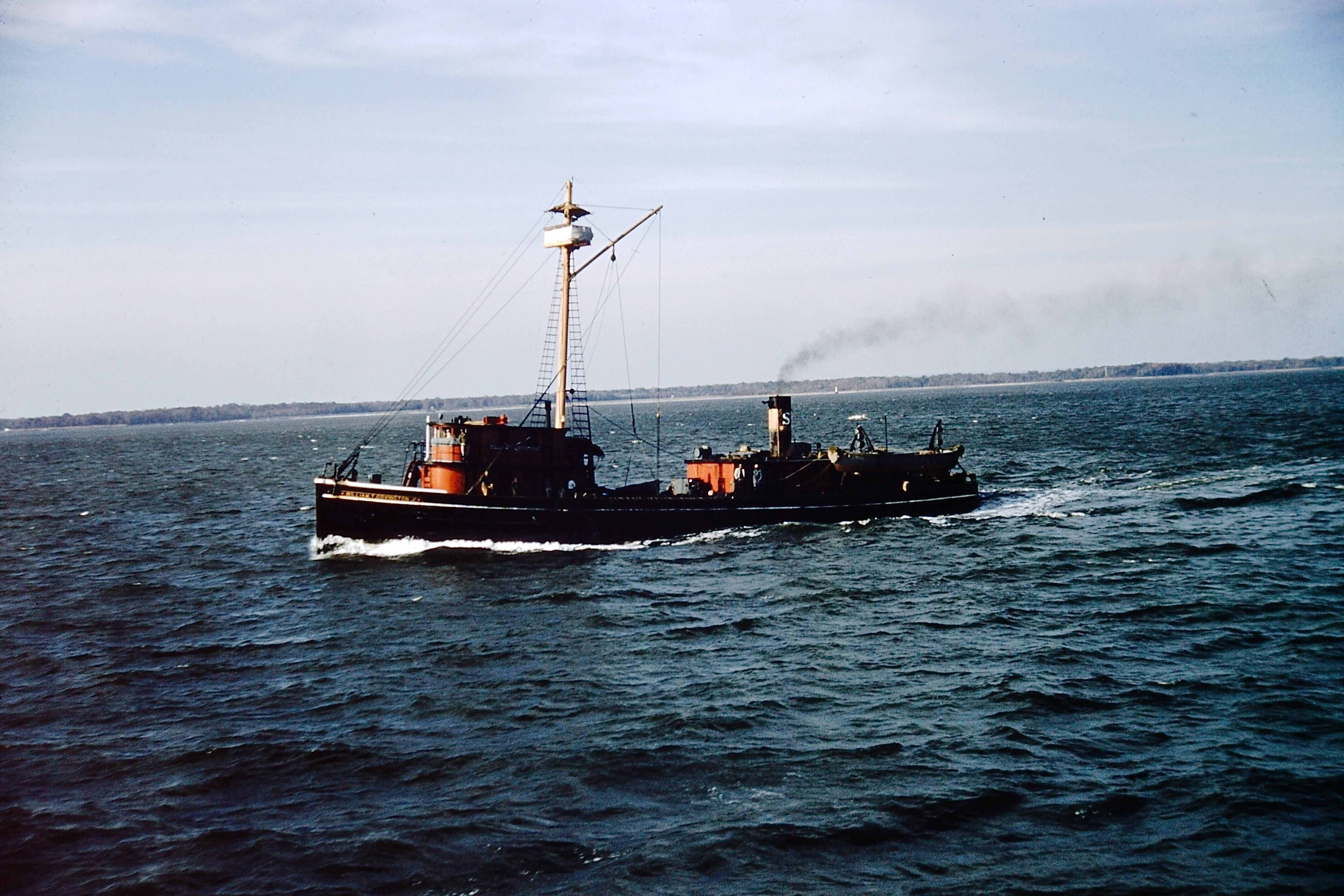 Bruce Collins captioned this image "An old wooden bunker boat still driven by steam." In his History Project, Inc. oral history, Bruce Collins told interviewer Tony Prohaska that he piloted the steamer Shinnecock out of Amagansett for Jack Edwards from 1954 until 1960. That date is used to estimate the date for these images.