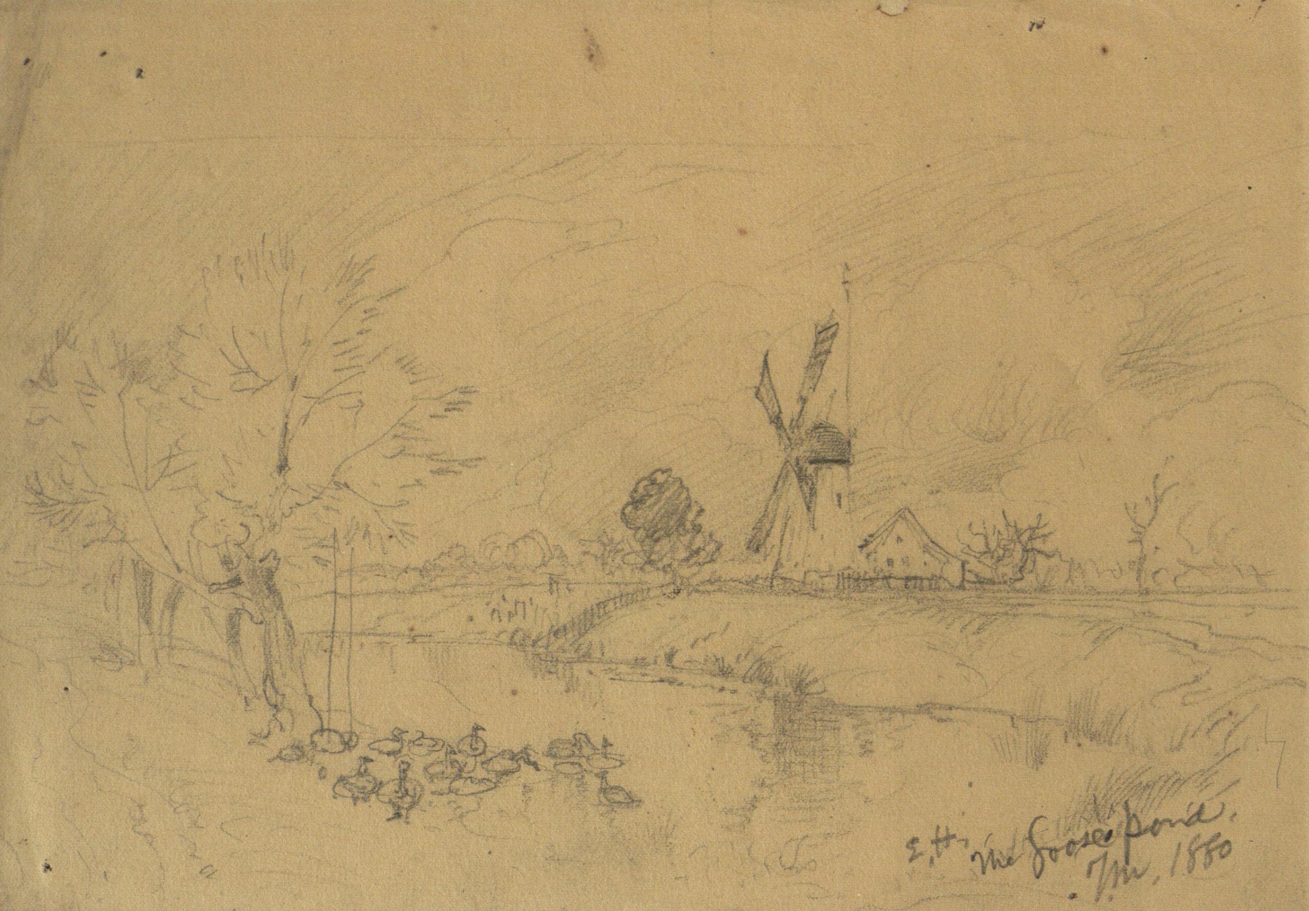Original pencil sketch of the goose pond, in East Hampton, N.Y., by Thomas Moran.