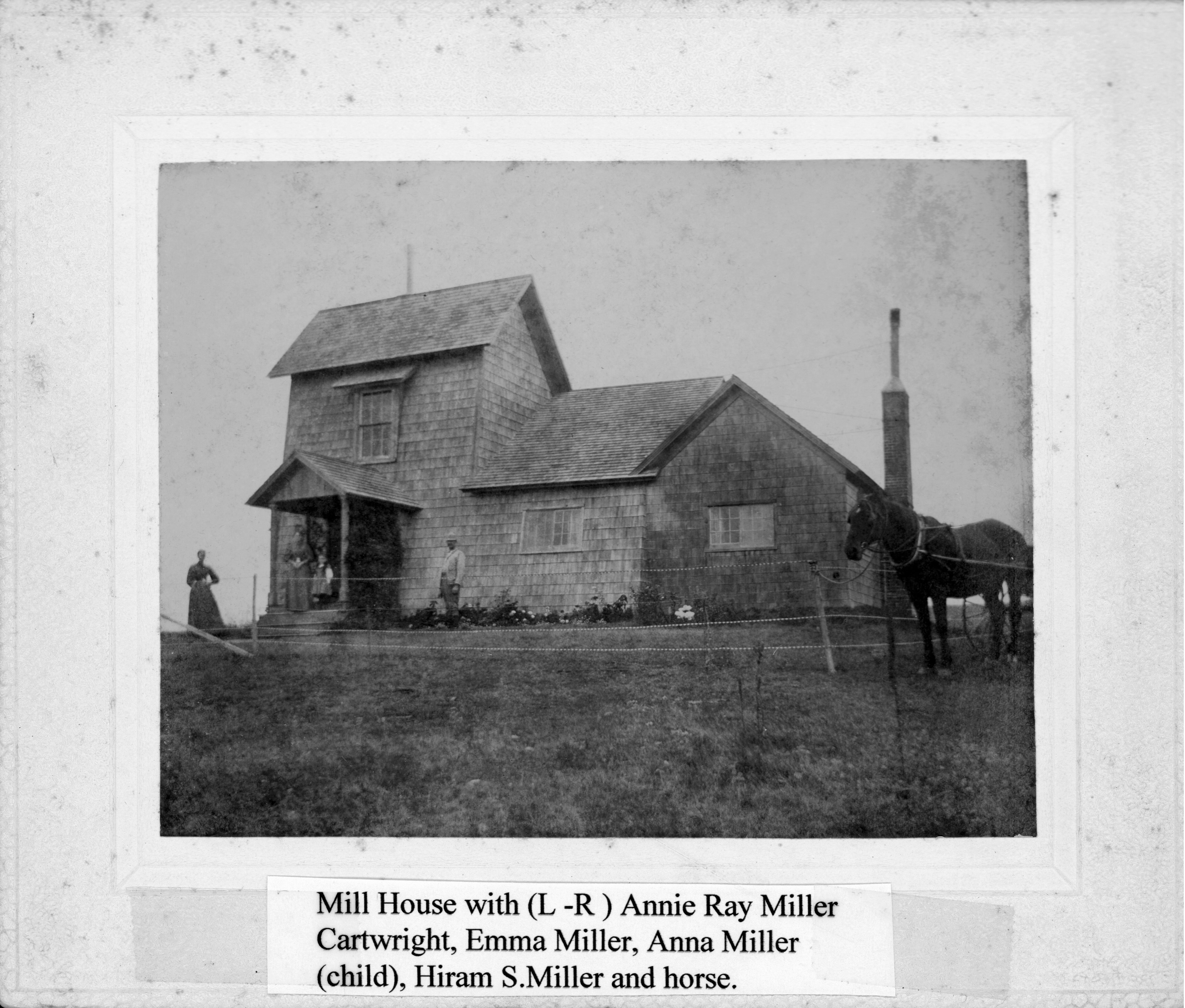 This image was scanned from the files of the Springs Historical Society/Library. The notation at the bottom identifies the people in the picture as: Annie Miller Cartwright, Emma, Anna & Hiram S. Miller with horse. The attire and type of photo technology are used to estimate a date for the photograph.