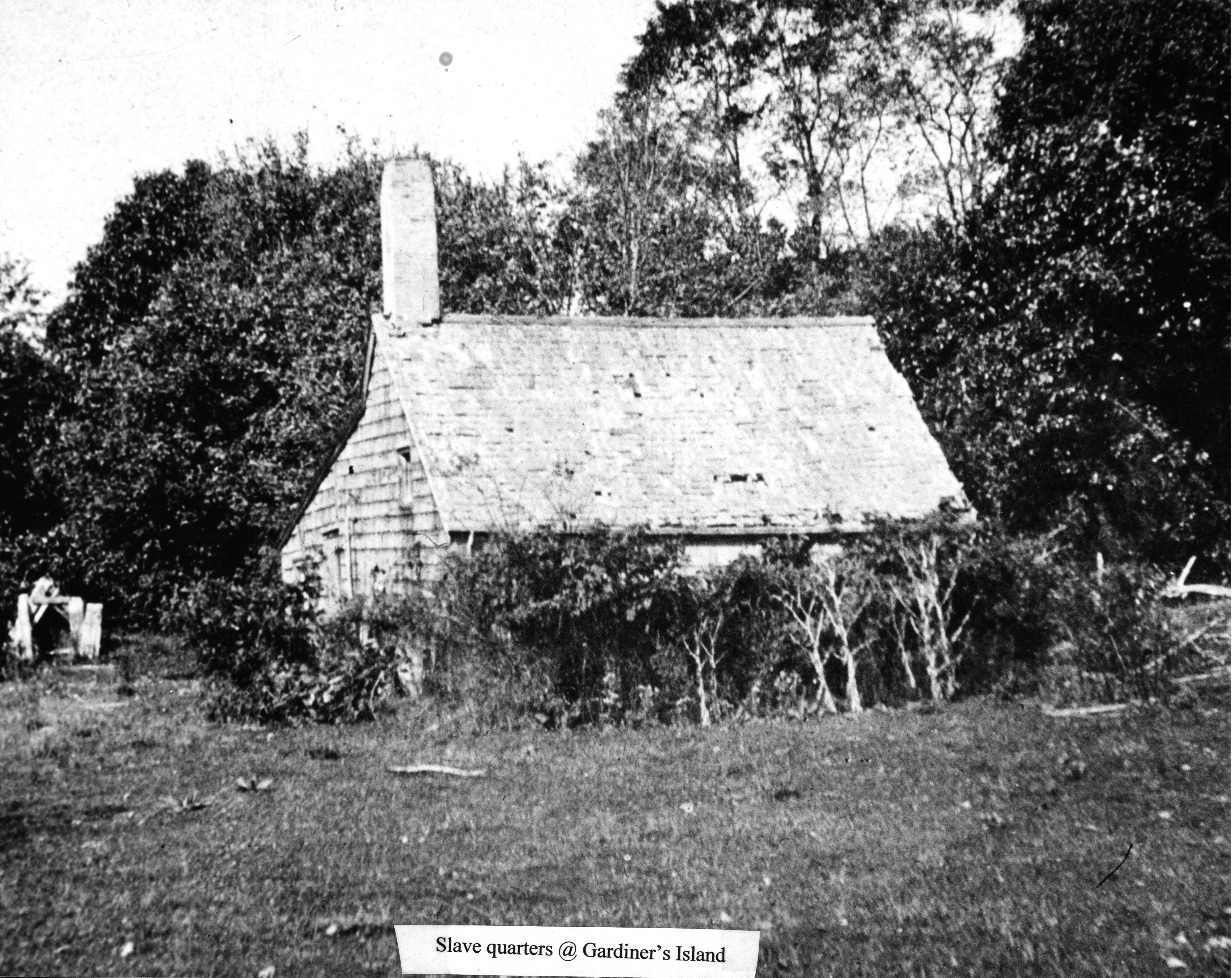 This image was scanned from the files of the Springs Historical Society/Library. A date is approximated based on the photo technology used. This would have been at least some of the housing for the people enslaved by the Gardiner Family on Gardiner's Island. Accounts indicate the Gardiner Family enslaved people from both African heritage and Native American heritage.