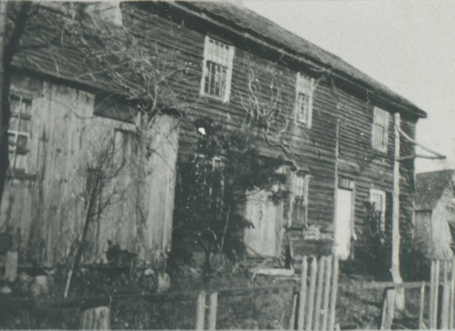 View of the Dominy house's fascade and (probable) addition of clock shop. The house is a lean-to style house formerly located on the west side of North Main Street (near corner of Cedar Street) in East Hampton, New York. It is thought to have been built in 1715 and was owned by three generations of the Dominy Family, beginning with Nathaniel Dominy in the late 18th century. The house was demolished in 1946.