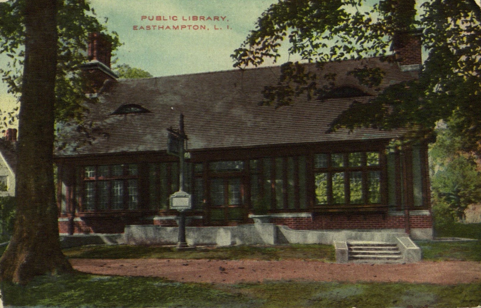 Postcard image of East Hampton Free Library, in East Hampton, L.I.