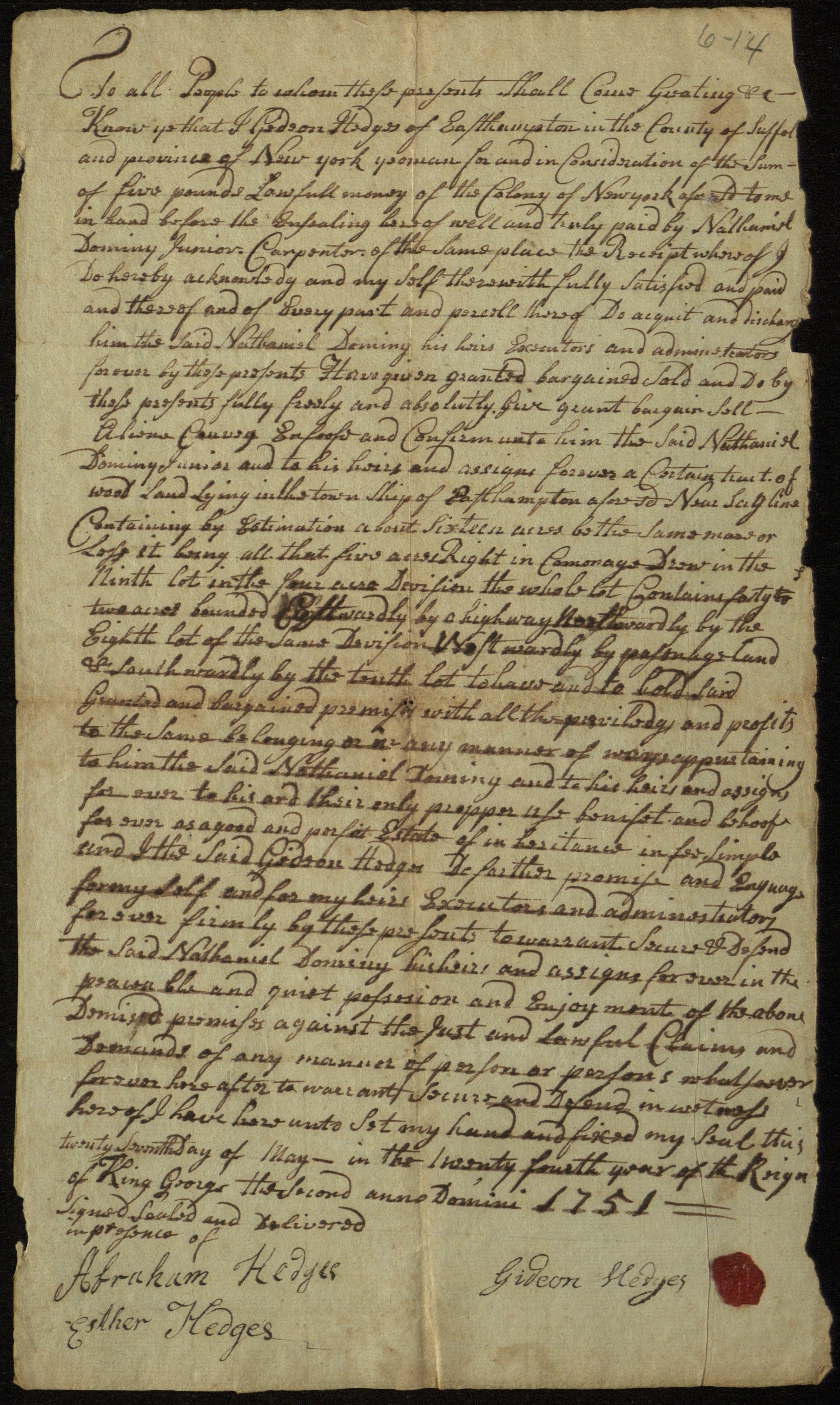 Deed to Nathaniel Dominy, Jr. : land allotments, May 7, 1751.
