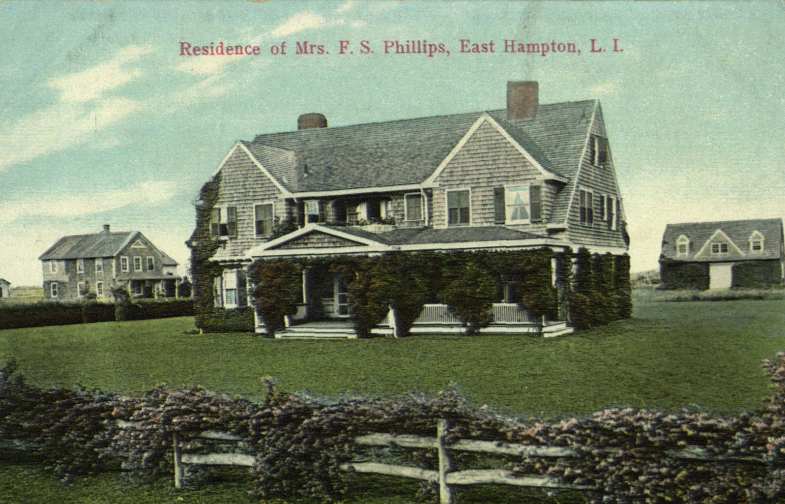 Postcard image of Mrs. F. S. Phillips residence, in East Hampton, L.I.