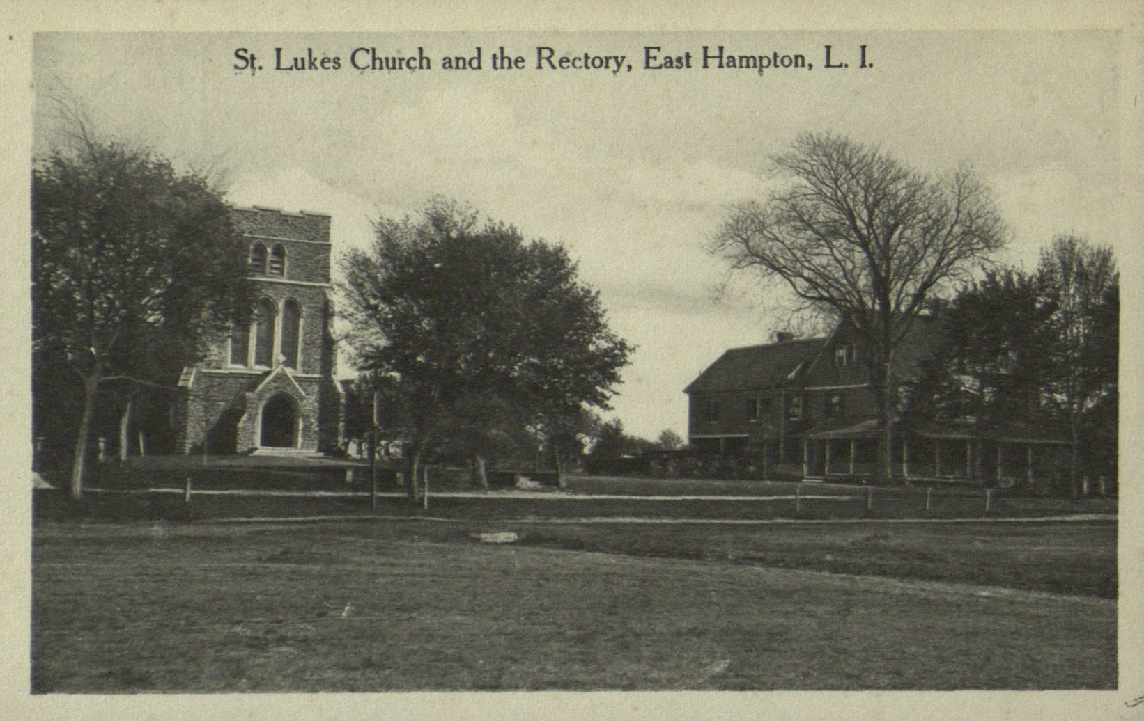 Postcard image of St. Luke's Episcopal Church and Rectory, in East Hampton, L.I.
