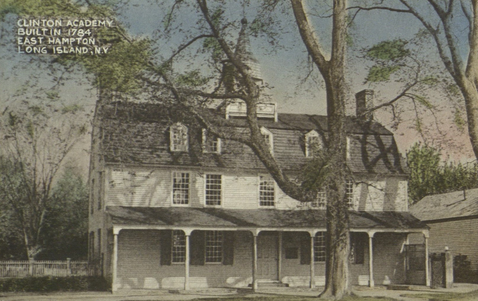 Postcard image of Clinton Academy, built in 1784, in East Hampton, Long Island, N.Y.
